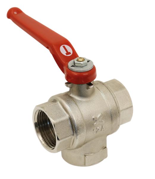 Vanne laiton 3 voies femelle en L verticale - 33mm - 1''1/4