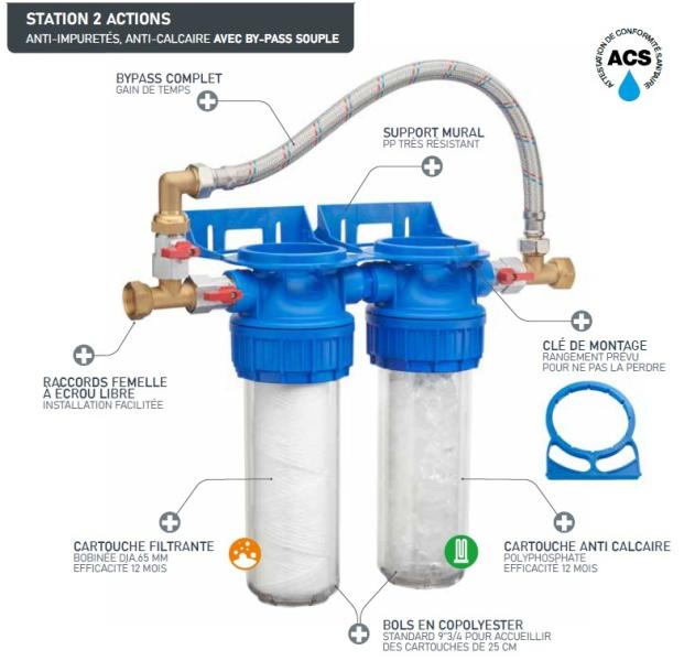 Circuit by-pass : l’eau contourne la station tout en continuant à alimenter l’installation.